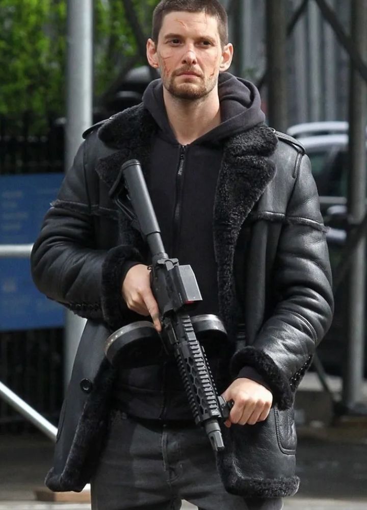 Ben Barnes The Punisher 2 Billy Russo Jigsaw Shearling Fur Black Leather Jacket