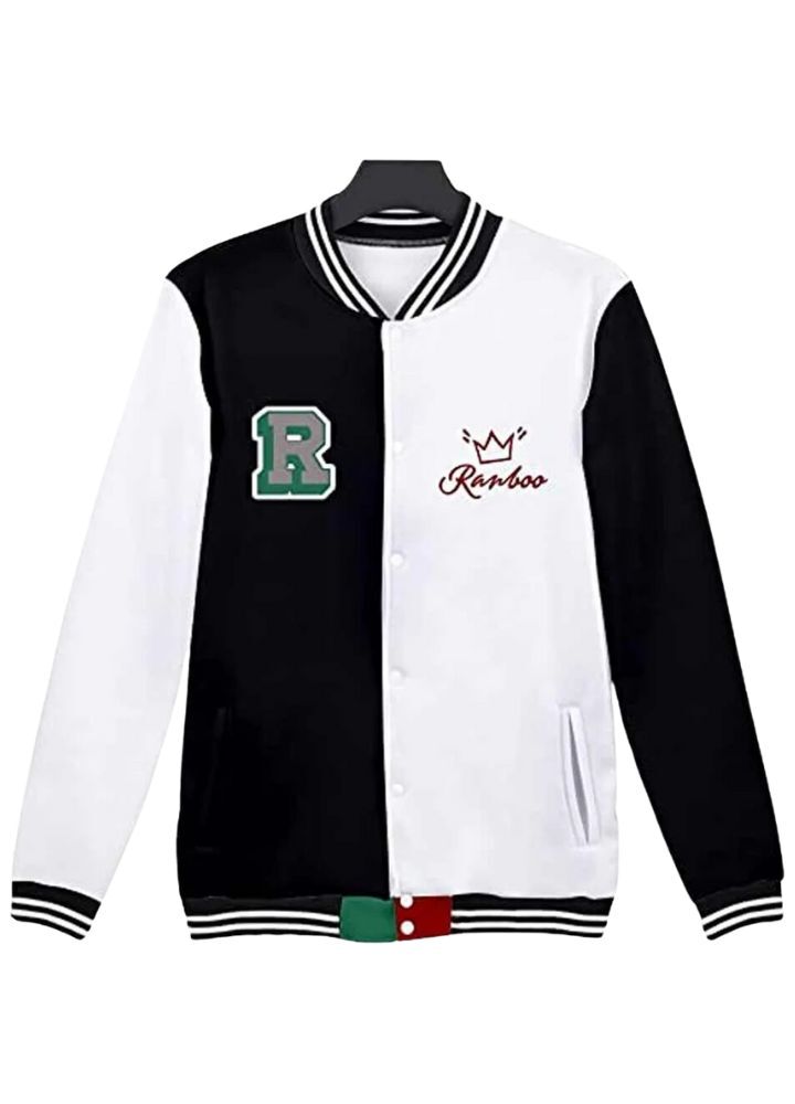 The Ranboo Letterman Varsity Jacket is a fashionable comfort piece. Constructed from soft fleece, it has an inner lining for warmth, a classic rib-knitted collar, and cuffs for a snug fit. The bold “R” logo on the front adds a statement to its multicolor design, perfect for any casual outfit. Whether you’re heading out with friends or relaxing, this jacket combines style and functionality.