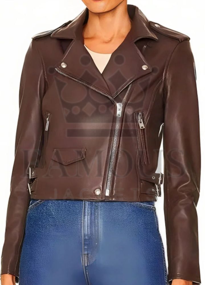 Scream Sidney Prescott Biker Brown Leather Jacket