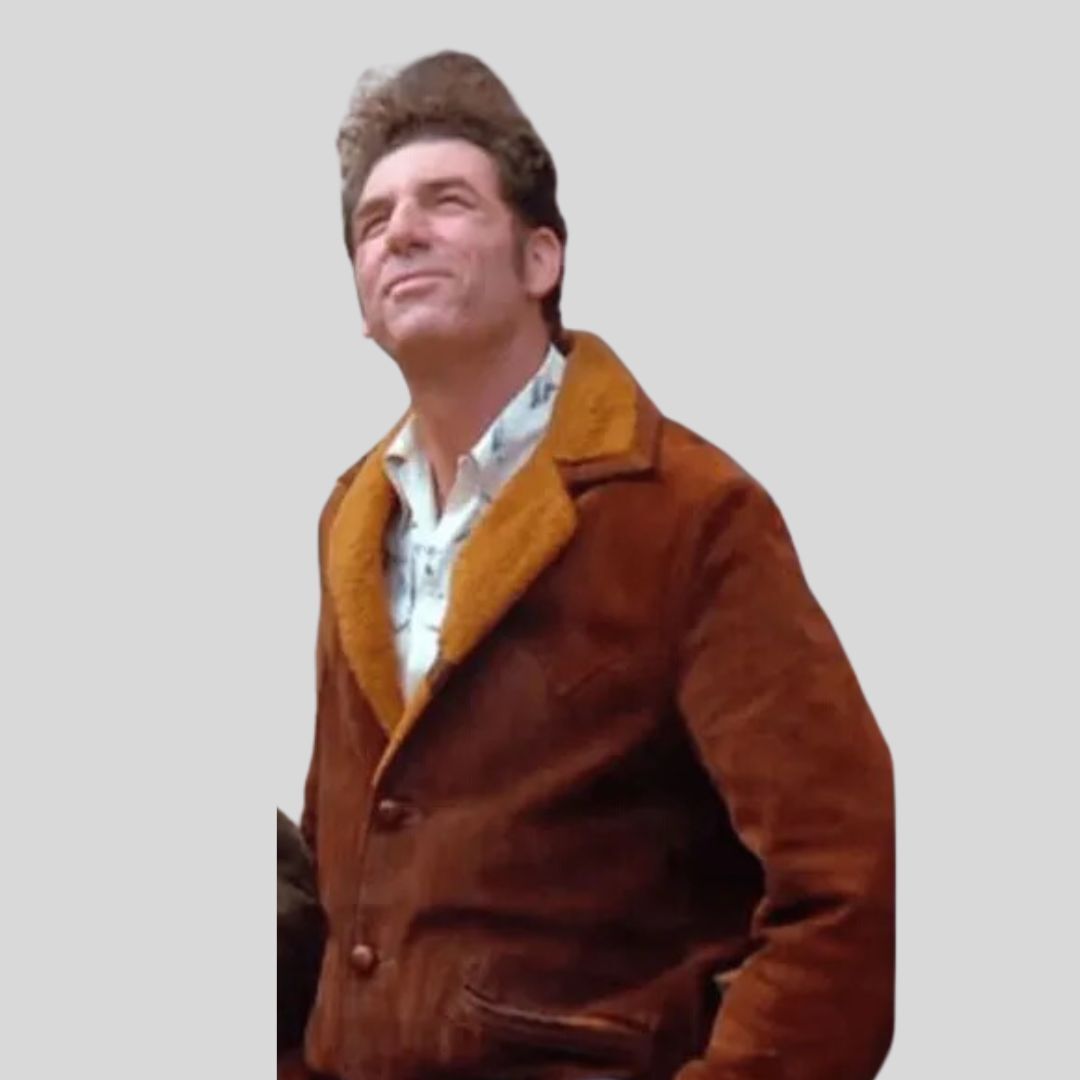 The Seinfeld Suede Leather Jacket, famously worn by Michael Richards in his iconic role as Kramer, is a standout piece that perfectly encapsulates the quirky and eccentric style of the character. This jacket, with its luxurious shearling lining and soft suede exterior, not only adds a layer of sophistication but also provides exceptional warmth and comfort. Its distinctive design and high-quality craftsmanship make it a timeless wardrobe essential for fans of the beloved TV show, offering a perfect blend of nostalgia and fashion-forward appeal.