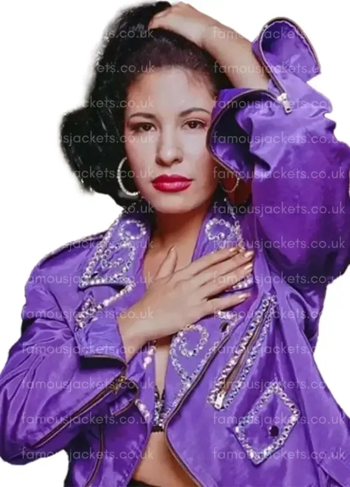 Selena Quintanilla’s Purple Biker Jacket With Vegan Suede Leather In Purple Colour Is A Tribute To The Tejano Queen. This Jacket Is Made Of Suede leather With Viscose Lining. It is so an Evil Purple colour with a Shawl Collar And Long Sleeves, giving it A Retro Touch. The Bker Cut Adds Definition, While The Inner Soft Viscose Lining Ensures Comfort. For Fans And Fashion Enthusiasts, This Stylish Biker Jacket Complements Casual Work Wear As Well As Daring Outfits. Wearing Care: Do Not Expose To Water Or Strong Cleaning Products For Best Results, Brush Gently Using Suede Cleaner