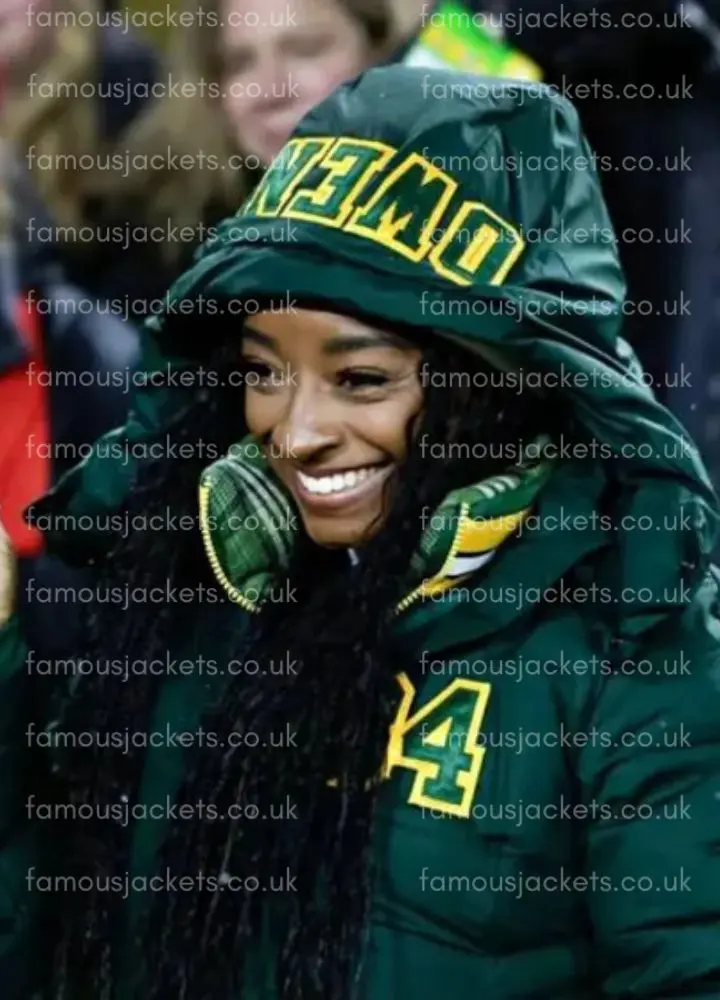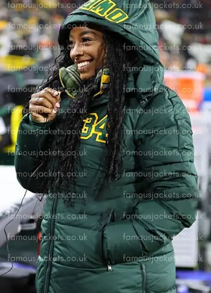 Simone Biles’ Packers Green Puffer Jacket is designed to bring together warmth, style, and durability in a single high-quality outerwear piece. We present a parachute fabric with a soft viscose lining, which gives you that extra comfort against the cold wind, at the same time that the piece maintains a lightweight feel. Also, we have the YKK front zipper pull, hooded collar, and elastic knitted cuffs, which see to it that the cold is kept out, thus making it a practical choice for winter days. That which the jacket also brings to the table is two side pockets and two inner pockets, which not only add to its functionality but also to its trendy look. It is the perfect choice for those who go for a sporty yet casual style.