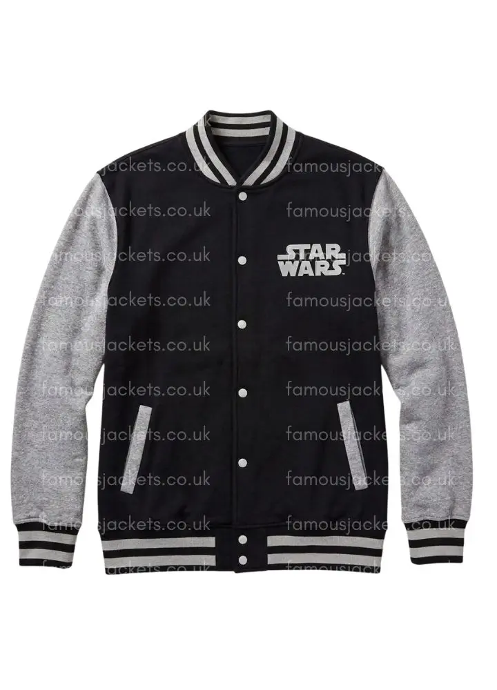 The Men’s Star Wars Throwback Jacket which is a product of the great Star Wars universe which has had a hold on many for generations via its great characters, grand battles, and forward thinking stories. Star Wars which is international in fame as one of the most influential film franchises which puts science and adventure together which in turn makes its apparel very much in demand among fans and fashion enthusiasts. This Star Wars Black Grey Jacket we present is a mix of movie magic and modern street wear which is at once a fan tribute and a fashion statement. Made from high quality wool the Star Wars Letterman Jacket has a tough yet supple feel which makes it ideal for cool weather. Also in black and grey which is very versatile this jacket goes great with any casual outfit. With a front button up design, stand up collar, buttoned cuffs and hem, and full length sleeves this Men’s Star Wars Jacket also brings in the classic varsity look. Also it has side waist pockets for every day use. As for care do to the quality of the wool it is best to dry clean only, also try and reduce the washes and to store in a cool dry place which will help preserve the fabric. With care it will keep its shape, color and durability for the long run. Whether you are going to a casual get together, a theme event, or just want to show off your love for the brand this Black Grey Letterman Jacket is the perfect mix of comfort, style and Star Wars heritage.