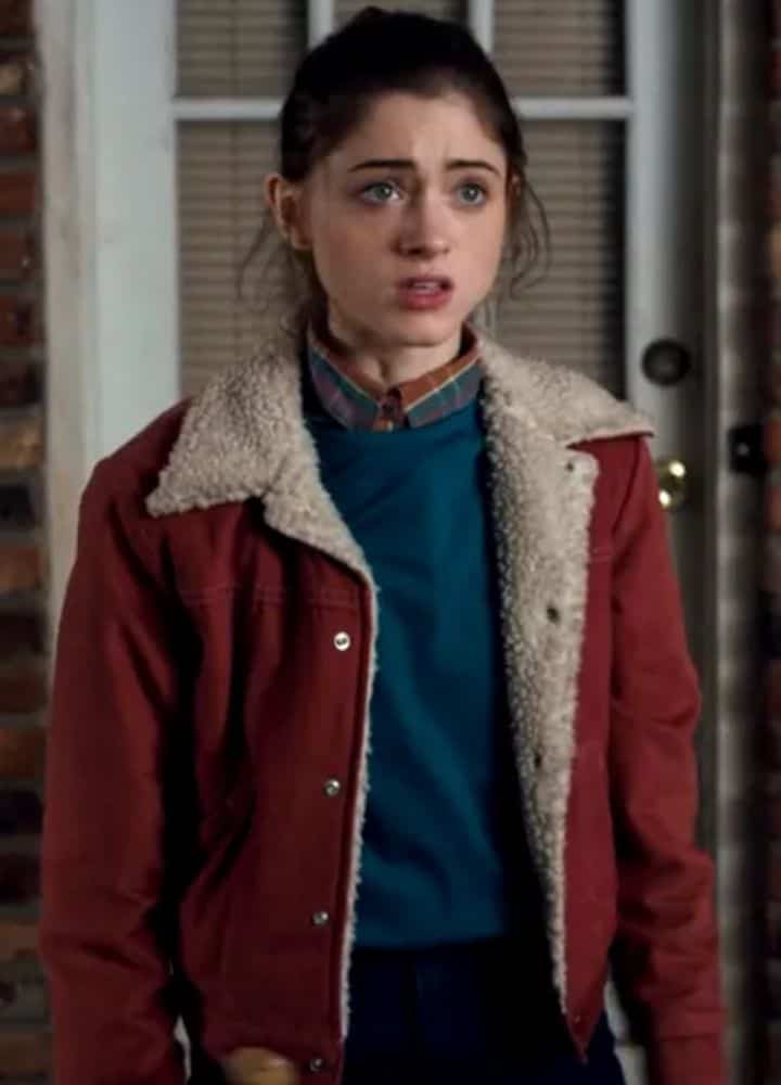 Nancy Wheeler Stranger Things Natalia Dyer Red Shearling Jacket