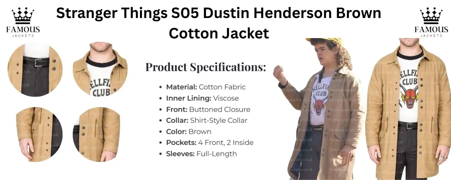 Step into the world of classic 80’s inspired fashion with the Gaten Matarazzo Stranger Things S05 Dustin Henderson Brown Jacket, which is a tribute to the fan favourite character, Dustin Henderson. Known for his smart mouth, wit, and that which propels him forward-Dustin’s style goes hand in hand with his adventurous spirit. This brown cotton jacket brings the same vintage charm to your collection that Hawkins had to offer, which in turn makes it a must-have for die hard fans looking to relive the mystery and appeal of that time.