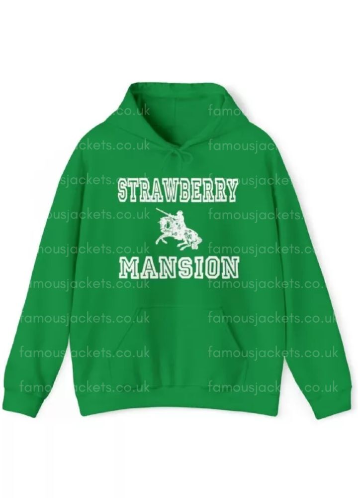 The green strawberry mansion hoodie feels incredibly comfortable, and the fabric remains soft even after multiple washes without fading or shrinking at all.