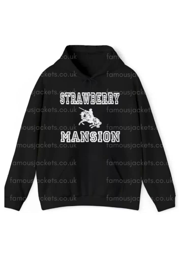 The strawberry mansion hoodie in black is extremely soft, warm, and stylish, making it perfect for both casual outings and lounging.