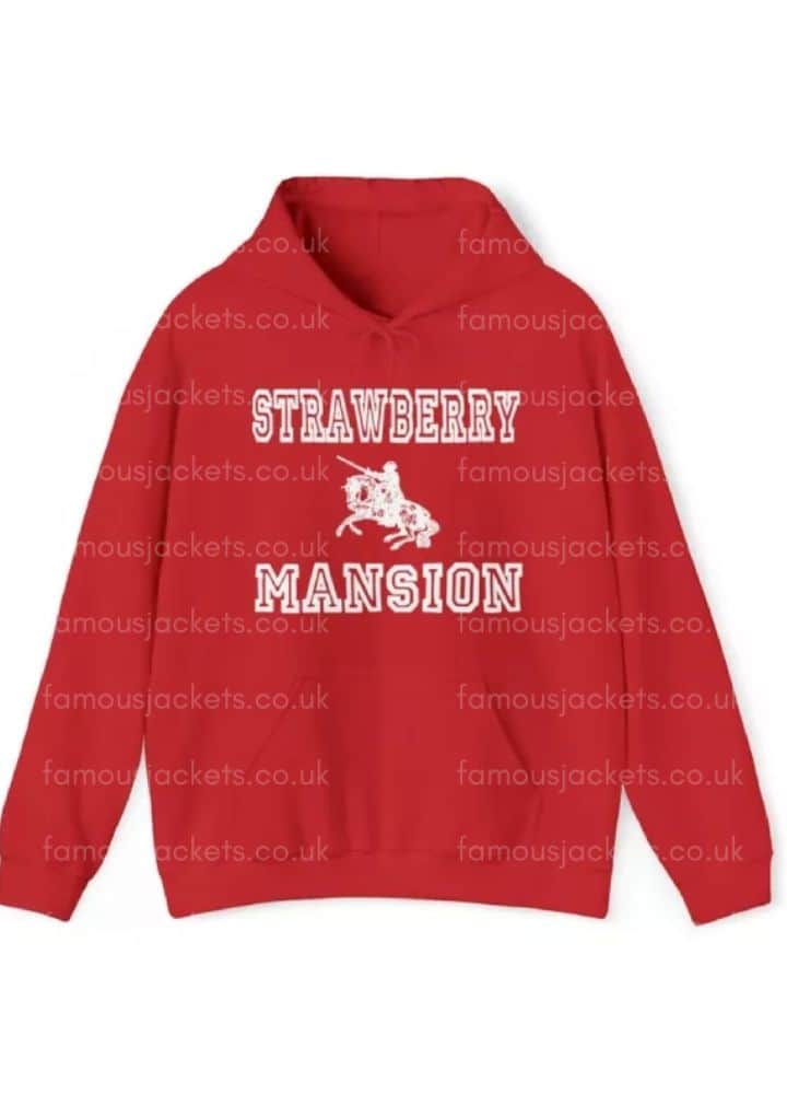 The red strawberry mansion hoodie is an instant favorite, with its eye-catching design and soft fleece lining that keeps me cozy.
