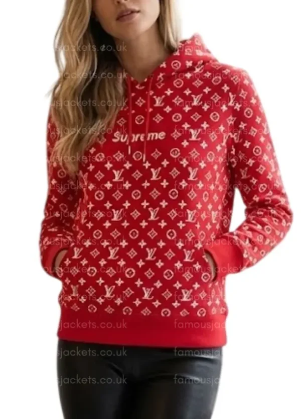Perfect mix of street and high fashion! Louis Vuitton elegance meets Supreme streetwear in this hoodie.