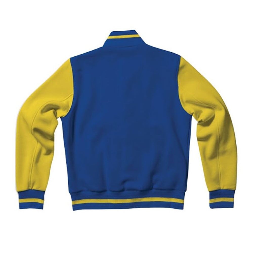 Our Teen Wolf Michael J. Fox Scott Howard Letterman Jacket we present as a great take on that classic look. In construction the jacket is made of wool for the body and real leather for the sleeves which we see in the blue and yellow which is a play on Scott Howard’s school colors. Also included is a viscose lined interior for that extra layer of comfort, a classic button front, ribbed collar, cuffs and hem, and also your standard issue of 2 side and 2 inner pockets which does not sacrifice style for function. Long sleeves which at the same time are warm and form fitting so it is great for going out casually or to a cosplay event.