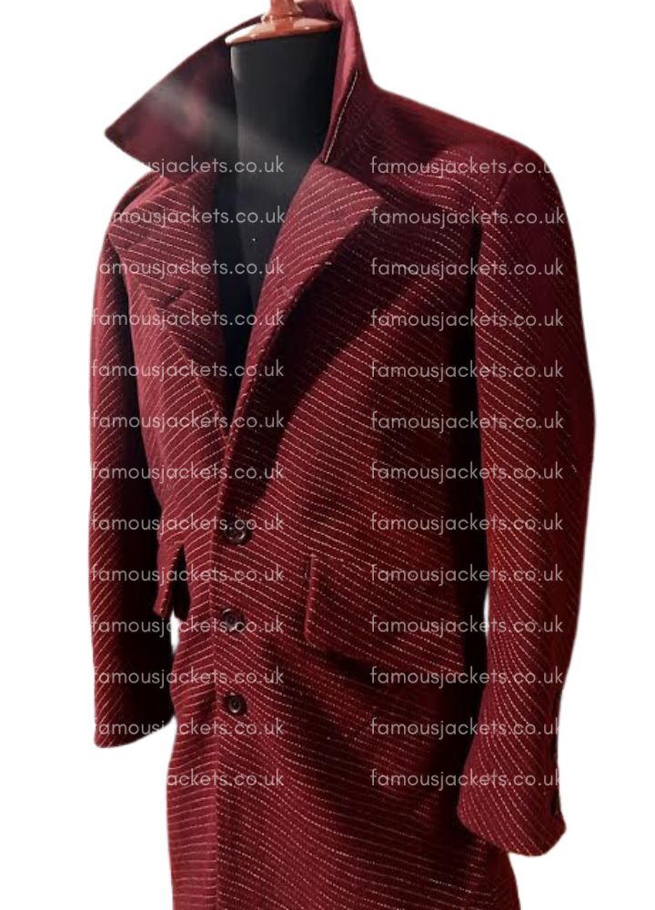 This inspires quirky Johnny Depp as Willy Wonka in Charlie and the Chocolate Factory, The Maroon Coat is still the best in every collection of fashion clothes. It has a strong viscous lining, but it’s still a piece of comfort through the quality wool fabric. Classic style lapel is seen in it, with its closure by a secure button. Full-length sleeves are seen in it, contrary to the color in black highlights. This rich maroon beauty is enhanced with two spacious outside pockets and two inside ones, which really make it stylishly functional. This makes this coat an excellent garment to go for either the most out-of-this-world costume party or as an enhancement for every day.