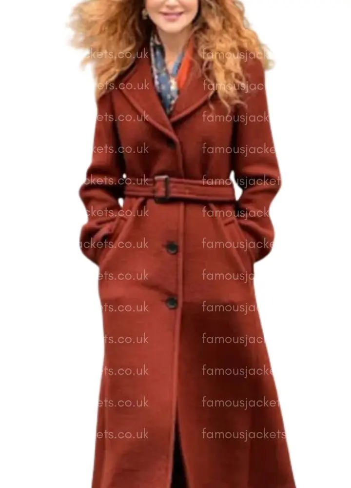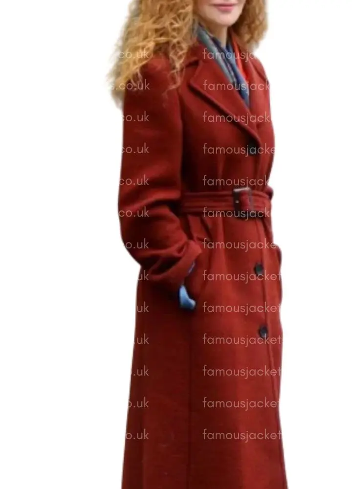 Inspired by HBO’s drama series The Undoing the Nicole Kidman Grace Fraser Belted Coat became a focal point of conversation around fashion this season. Wore by Nicole Kidman as Grace Fraser this red coat is a stand out piece which projects power, mystery and timelessness. In the series Grace’s wardrobe was key to present her character’s emotion and the Grace Fraser Belted Coat is a signature piece. The bold red color is a symbol of confidence and intensity which makes it a great choice for winter events, evening get-togethers, the office, formal dinners, or a stylish city walk. You may be reproducing the look of the Grace Fraser Red Coat or simply in the market for a premium Wool Belted Coat this design is a great example of how film fashion meets every day wear. The Nicole Kidman Red Coat is perfect for fall and winter which it provides warmth without sacrificing style. If you are into celebrity inspired fashion the Nicole Kidman Belted Coat is a must have addition to your collection.