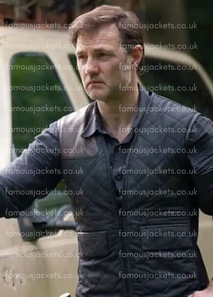 Step into the world of The Walking Dead that is as dark and charismatic as it gets with the David Morrissey Governor Vest. In the series, The Governor, which was brought to life by David Morrissey, is known for his complex character arc, strategic mind, and in-demand fashion sense, which includes his black quilted vest that became a fan favourite and fashion icon. This The Walking Dead outfit we present is a great play on power and grace, ideal for the fan who looks for that little bit of cinema in their everyday wear.
