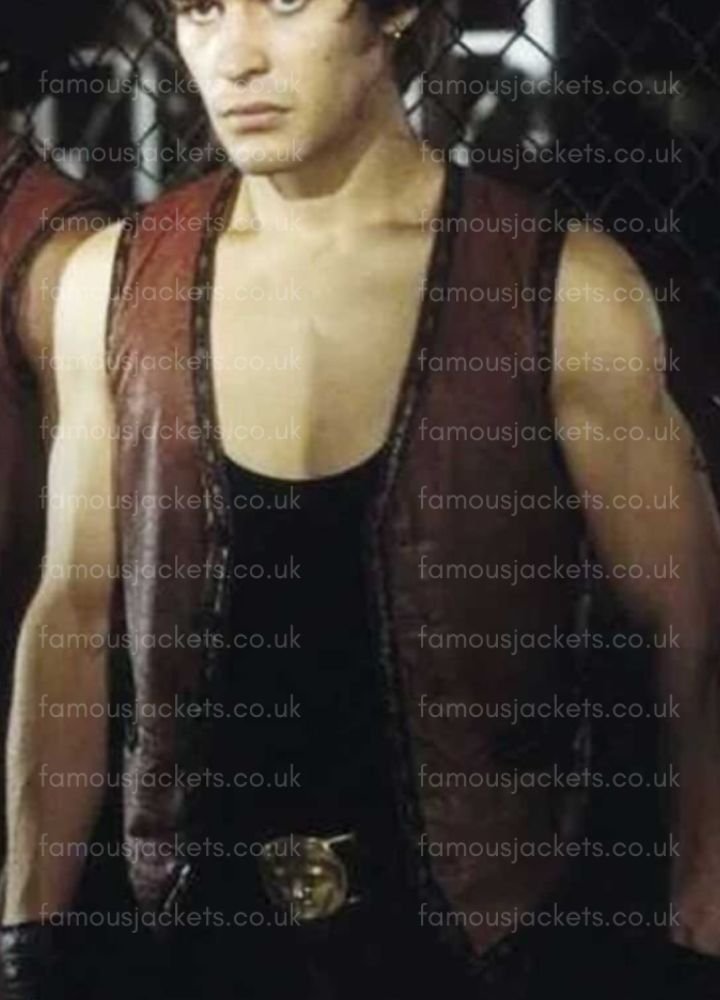 This Warriors James Remar Ajax Gang Leather Vest is inspired by the iconic Warriors movie but it is a cosplay-necessary item. This vest is made of faux leather / real leather and an inner lining of viscose. It has a button-front closure and V-neck collar, comes in a plain brown hue, and has a total of four pockets: two on the outside and two internally for practicality.