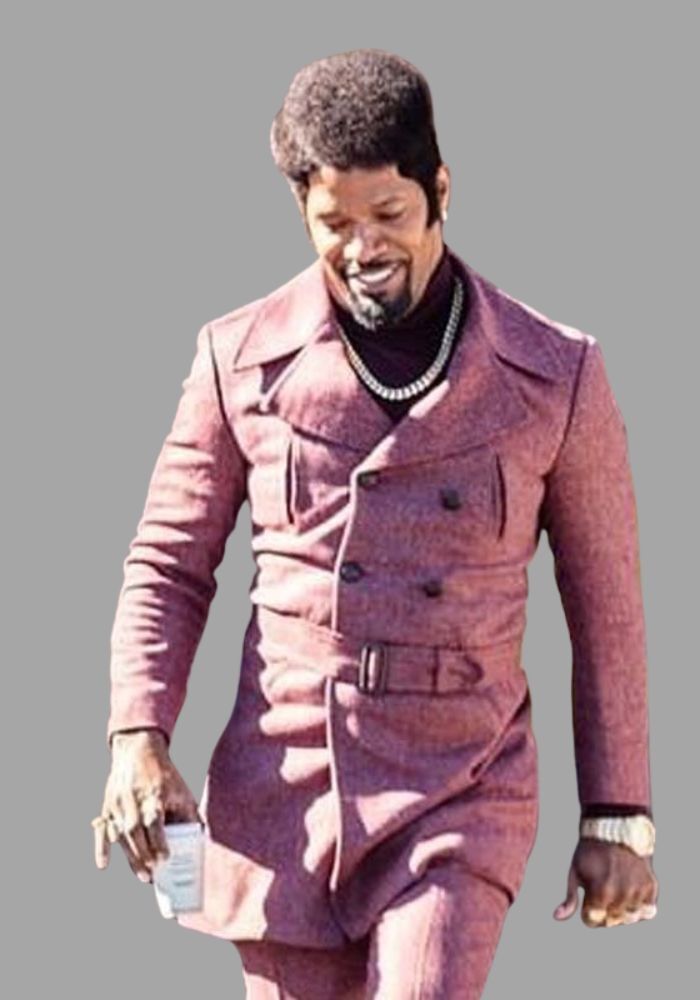 The They Cloned Tyrone 2023 Purple Coat for Jamie Foxx (Slick Charles) is a mesmerizing Production of a coat that displays strength and brilliance of the character played by Jamie Foxx. This coat has been tailored from wool blended material that gives it a natural warmer, best suitable for the cold seasons. The dress has a striking purple colour, double-breasted buttons that make the dress very stylish, a lapel-style collar, and long sleeves with open hems on the cuffs. This trench coat features two inside and four outside pockets, all of which gives plenty of storage and style to the wearer smoothly.