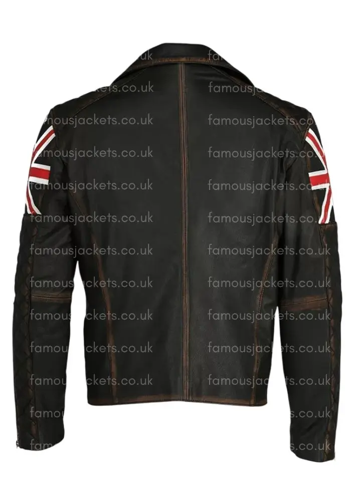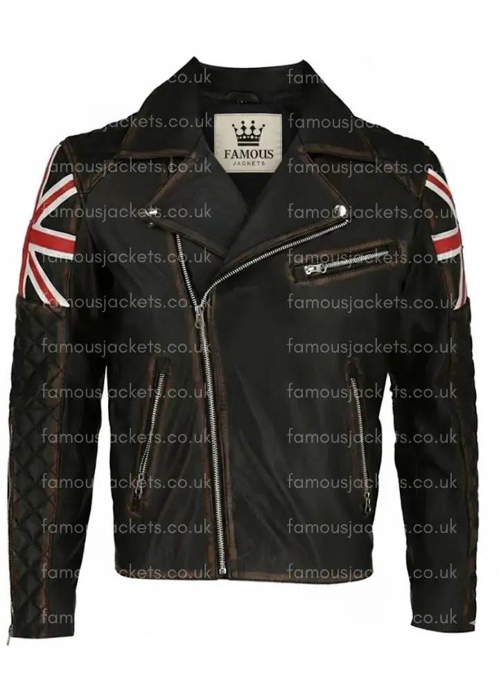 UK Flag Union Jack Distressed Leather Jacket