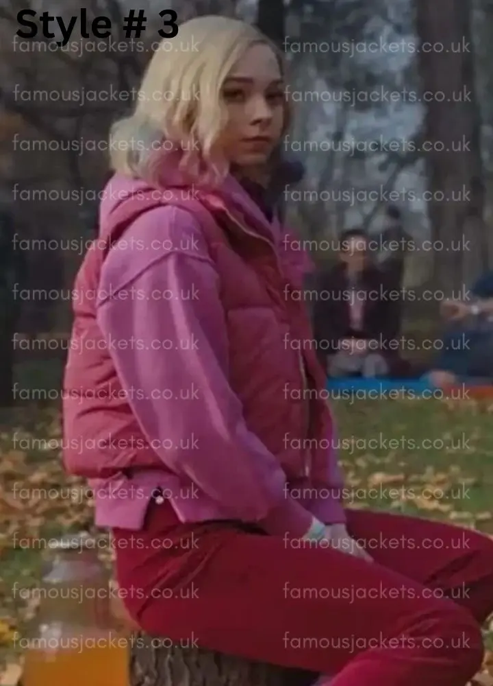 Emma Myers brought life to Enid Sinclair in the very 1st Season of Wednesday, stealing all the limelight with her vibrant pink outfits, a true reflection of her cheerful character. Her cozy pink wool coat, along with her trendy pink puffer vest and chic pink fur jacket, won hearts right away; such pieces of clothing are renowned to have created the fan behind them. This really was an appeal for several reasons. The Enid Sinclair outfits most important one is that these three outfits will not lose their style and fashion after one season. With good care, they may provide another few years of quality service.
