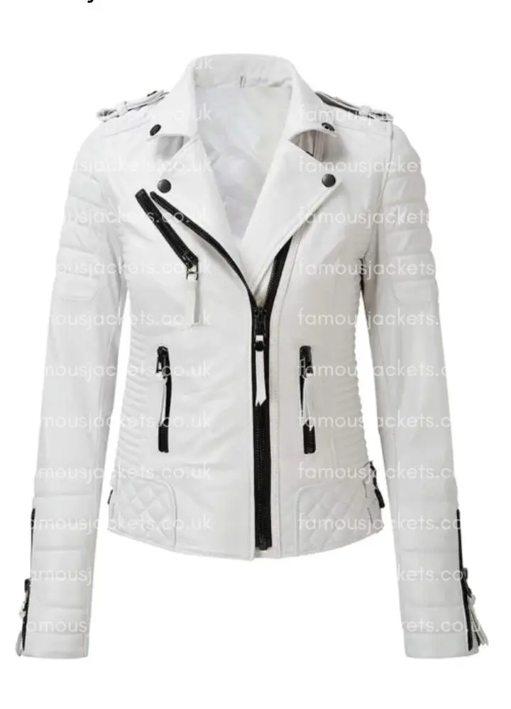 Women’s Biker Jacket is a perfect blend of grace and edge, which we put into every element of the design. We offer it in our soft faux and real leather options, and we’ve included a viscose lining for that extra layer of comfort and warmth. We went with a notch collar, an off-centre zipper pull, and full-length sleeves that have YKK zippers on the cuffs, which we think pays homage to classic biker style. The white color is very classic and so versatile; pair it with jeans for a casual look, go out for the night, or rock it at a concert. Also, we included a lot of storage with 1 chest pocket, 2 at the sides and 2 inside, which we think really brings it all together in terms of style and function.